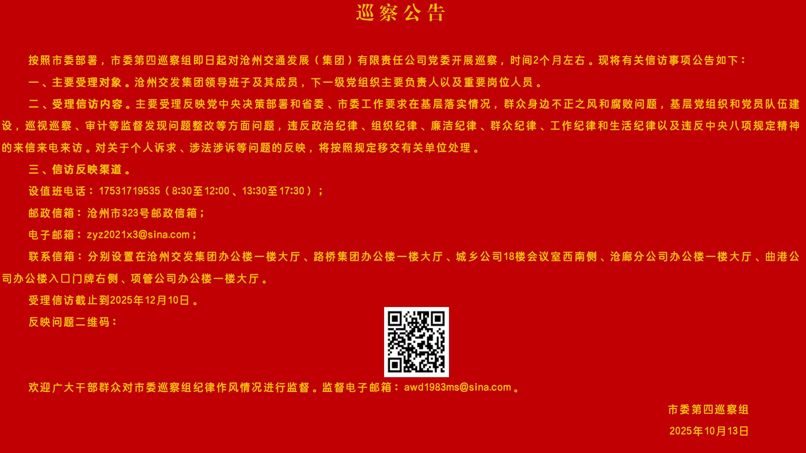 市委第四巡察組巡察 滄州交通發(fā)展(集團(tuán))有限責(zé)任公司黨委 工作動(dòng)員會(huì)召開